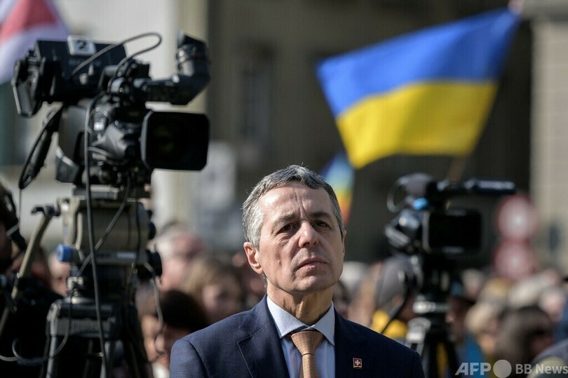 集会には数千人が参加。スイスのイグナツィオ・カシス(Ignazio Cassis)大統領も壇上で演説し、「ウォロディミルよ、抵抗に向けたあなたがたの意志や難局を乗り越えようとするウクライナ国民の姿勢に深い感銘を受けた」とエールを送った。(c)AFP
