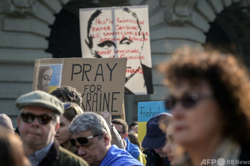【3月20日 AFP】ウクライナのウォロディミル・ゼレンスキー(Volodymyr Zelensky)大統領は19日、スイスの首都ベルンの議会前で開かれたウクライナ支持集会に向けオンラインで演説し、ロシアの侵攻で「子どもたちが死んでいるにもかかわらず」、スイス食品大手ネスレ(Nestle)など同国企業がロシア事業を平常通り継続していると非難した。