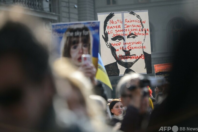 【3月20日 AFP】ウクライナのウォロディミル・ゼレンスキー(Volodymyr Zelensky)大統領は19日、スイスの首都ベルンの議会前で開かれたウクライナ支持集会に向けオンラインで演説し、ロシアの侵攻で「子どもたちが死んでいるにもかかわらず」、スイス食品大手ネスレ(Nestle)など同国企業がロシア事業を平常通り継続していると非難した。