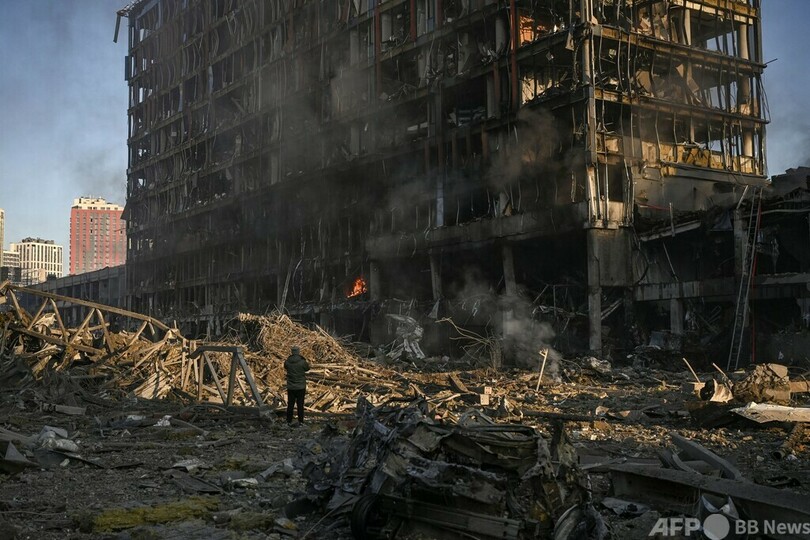 【3月21日 AFP】(写真追加)ウクライナの首都キエフで20日夜、北西部にあるショッピングセンターが攻撃を受け、少なくとも6人が死亡した。AFP記者が21日、確認した。