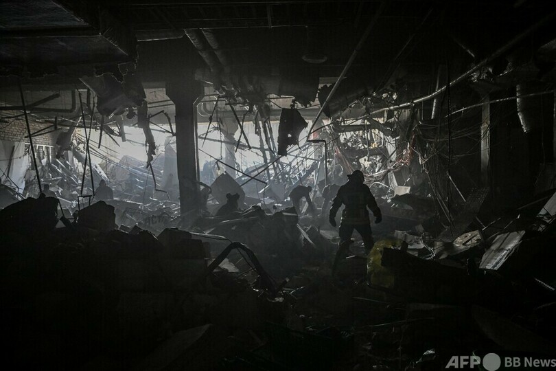 【3月21日 AFP】(写真追加)ウクライナの首都キエフで20日夜、北西部にあるショッピングセンターが攻撃を受け、少なくとも6人が死亡した。AFP記者が21日、確認した。