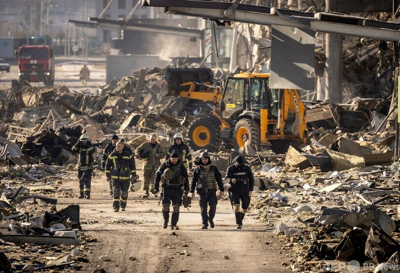 キエフでは21日、商業施設がロシア軍に攻撃されたのを受け、午後8時から35時間の外出禁止令が再び発令された。現場を取材したAFP記者は、6人の遺体が地面に横たわっているのを確認した。
