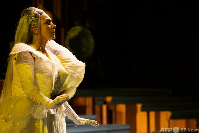 艾氏はビデオ映像による演出で、国家による脅威を表現。未来都市の廃虚を思わせるセットには、防護服を着た医療従事者、川を渡る難民、香港のデモ隊と対峙(たいじ)する機動隊、フェンスの向こう側にいる移民、さらには警棒、首を絞められる市民、催涙ガスなど、最近のニュースの悲惨な映像が映し出される。