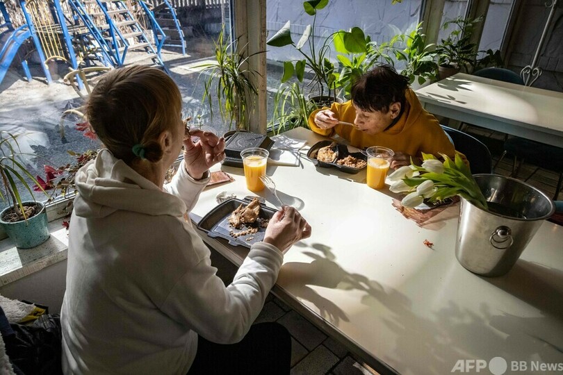 【3月24日 AFP】ウクライナの首都キエフの流行最先端レストラン「チェルノモルカ(Chernomorka)」。ロシアによるウクライナ侵攻後、店は営業を停止し、今は無料で食事を配布している。