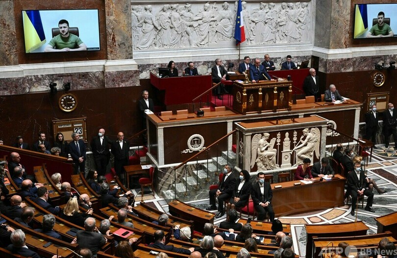 ゼレンスキー氏はここ数週間にわたり、各国の支援を得るために西側諸国の議会で演説を行っている。フランス議員は演説開始前、ウクライナと同国駐仏大使に3回のスタンディングオベーションを送った。
