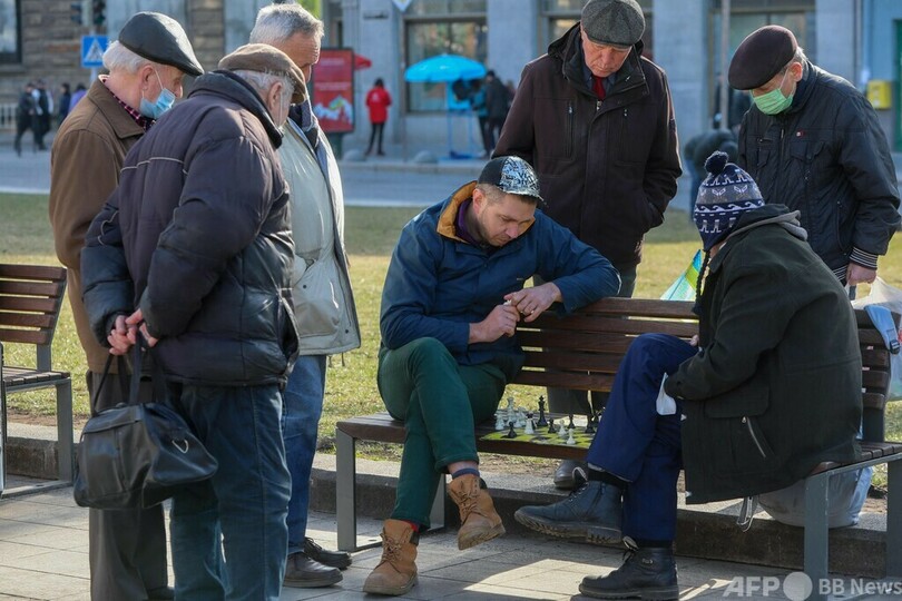 リビウはまたウクライナの「チェスの都」とも言われ、ベンチでは市民がチェスを楽しんでいる。グランドマスターで、ウクライナチャンピオンのアンドレイ・ボロキチン(Andrei Volokitin)さんもその一人だ。(c)AFP