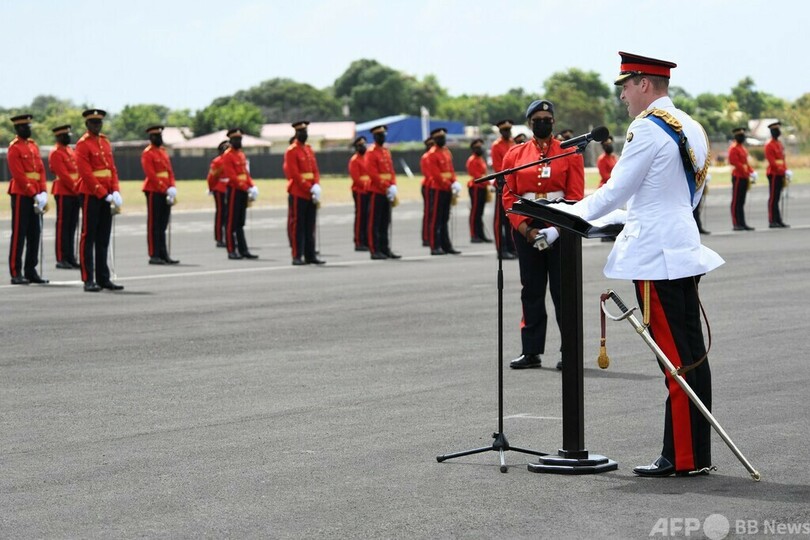 【3月25日 AFP】英国のウィリアム王子(Prince William)とキャサリン妃(Catherine, Duchess of Cambridge)は24日、訪問先のジャマイカで士官学校の任官式に出席した。