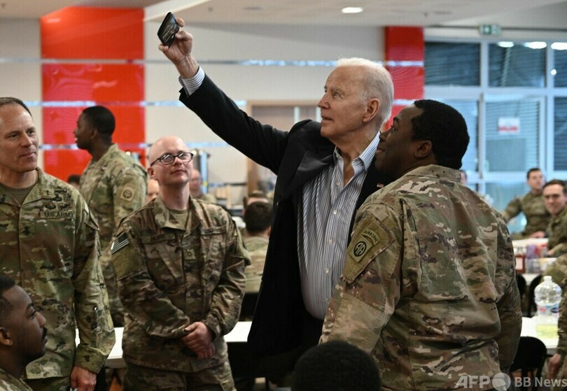 バイデン氏は、現地に駐留する米軍兵士や、ウクライナから多数流入した難民の支援に当たる活動家との会合で、ウクライナ人がロシアに対し示した「気骨」を称賛。ライフル銃を持ち戦車に立ち向かった女性の例に言及し、「まるで天安門広場で起きたことのようだ」と語った。