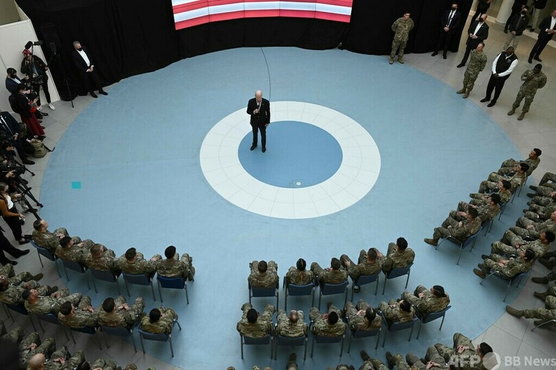 バイデン氏は、現地に駐留する米軍兵士や、ウクライナから多数流入した難民の支援に当たる活動家との会合で、ウクライナ人がロシアに対し示した「気骨」を称賛。ライフル銃を持ち戦車に立ち向かった女性の例に言及し、「まるで天安門広場で起きたことのようだ」と語った。