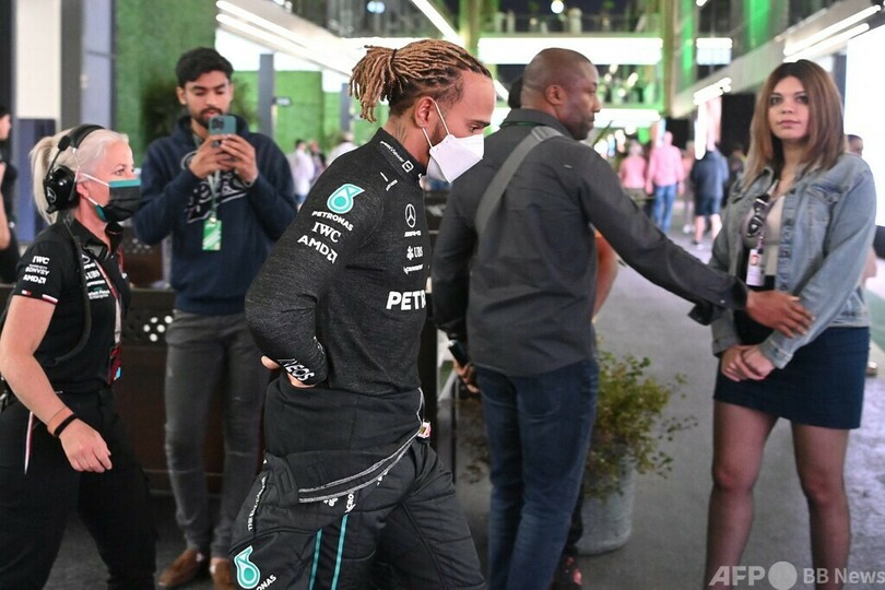 メルセデスAMG(Mercedes AMG)勢はルイス・ハミルトン(Lewis Hamilton)が5番手、ジョージ・ラッセル(George Russell)が6番手のタイムを記録した。(c)AFP