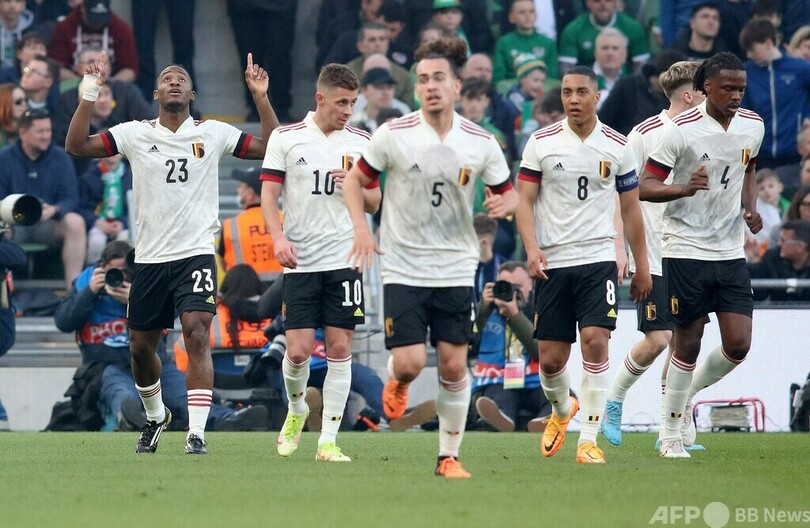国際サッカー連盟(FIFA)ランキング1位のベルギーは、敵地ダブリンで2度先行したものの、アイルランドと2-2で引き分けた。(c)AFP