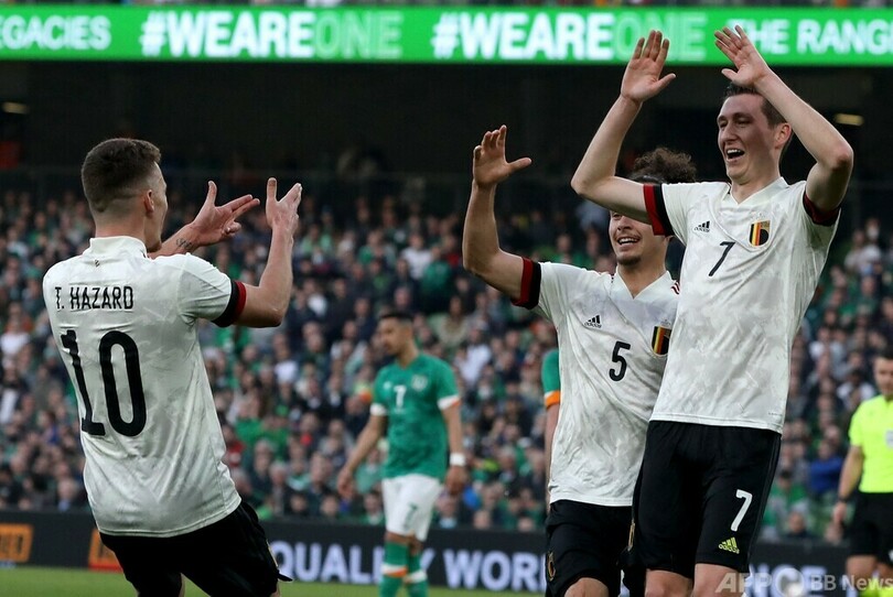 国際サッカー連盟(FIFA)ランキング1位のベルギーは、敵地ダブリンで2度先行したものの、アイルランドと2-2で引き分けた。(c)AFP