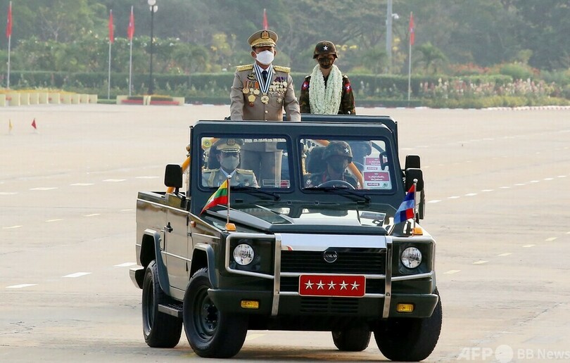 【3月28日 AFP】ミャンマーのミンアウンフライン(Min Aung Hlaing)国軍総司令官は27日、首都ネピドーで行われた軍の記念日の式典で演説し、民主派抵抗勢力を「全滅させる」と述べ、強硬姿勢を示した。