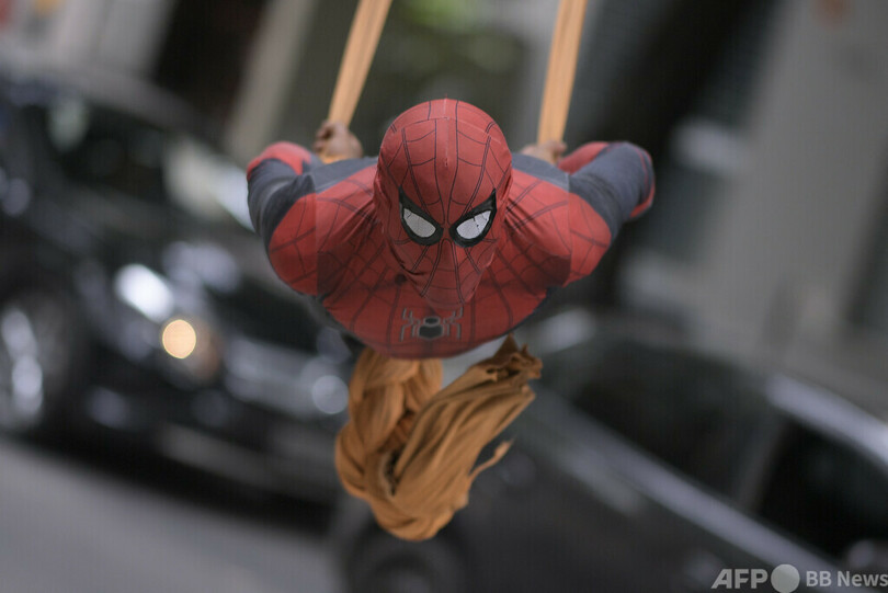 【今日の1枚】車道で宙に舞うスパイダーマン、ブラジル