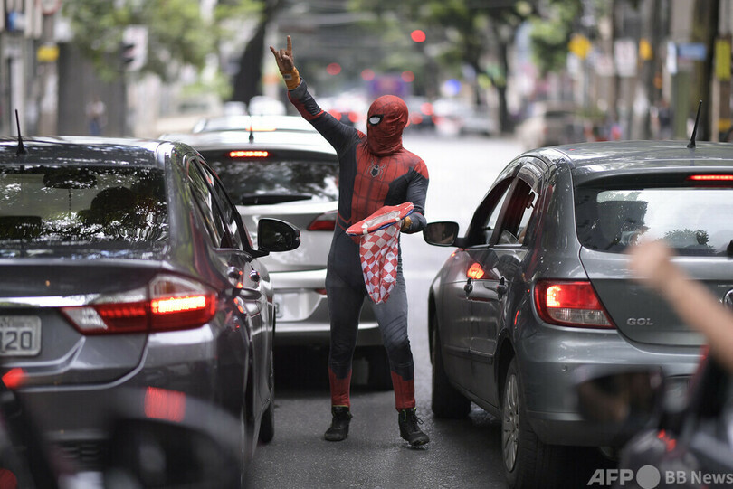 【今日の1枚】車道で宙に舞うスパイダーマン、ブラジル
