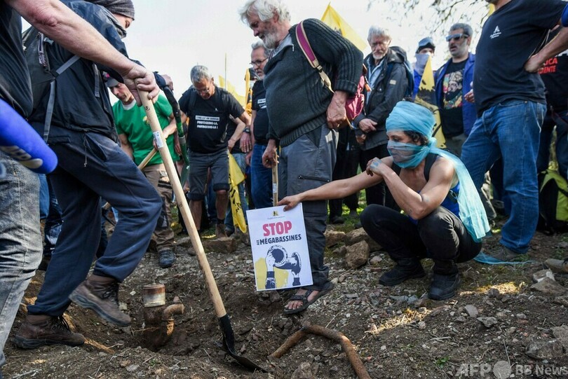 合成樹脂のシートを張り詰めた貯水池を建設し、冬季に川の水や地下水をため、水が少ない夏季のかんがい用水にする計画。デモ参加者らは「大規模農業産業による水の独占」を非難し、計画の停止を求めた。主催者は、今後も大規模なデモを行う方針。(c)AFP