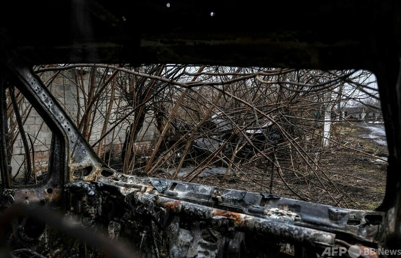 【3月31日 AFP】ウクライナの首都キエフをめぐる戦いは市周辺の村や町が舞台となっている。規模の小さな農村、ルキヤノフカ(Lukianivka)もそのうちの一つで、崩れ落ちた教会のそばには、焼け焦げた戦車と土をかけられたロシア兵の遺体が残されている。