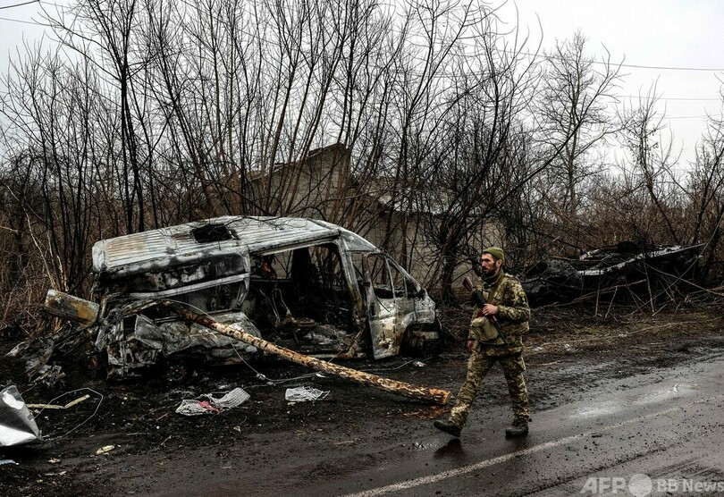 あるウクライナ兵は村の惨状を指して「これが『非軍事化』で『非ナチ化』ってやつだ」と、ロシアのウラジーミル・プーチン(Vladimir Putin)大統領が侵攻を正当化した際の発言を皮肉った。
