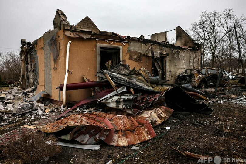 あるウクライナ兵は村の惨状を指して「これが『非軍事化』で『非ナチ化』ってやつだ」と、ロシアのウラジーミル・プーチン(Vladimir Putin)大統領が侵攻を正当化した際の発言を皮肉った。