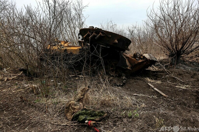 【3月31日 AFP】ウクライナの首都キエフをめぐる戦いは市周辺の村や町が舞台となっている。規模の小さな農村、ルキヤノフカ(Lukianivka)もそのうちの一つで、崩れ落ちた教会のそばには、焼け焦げた戦車と土をかけられたロシア兵の遺体が残されている。