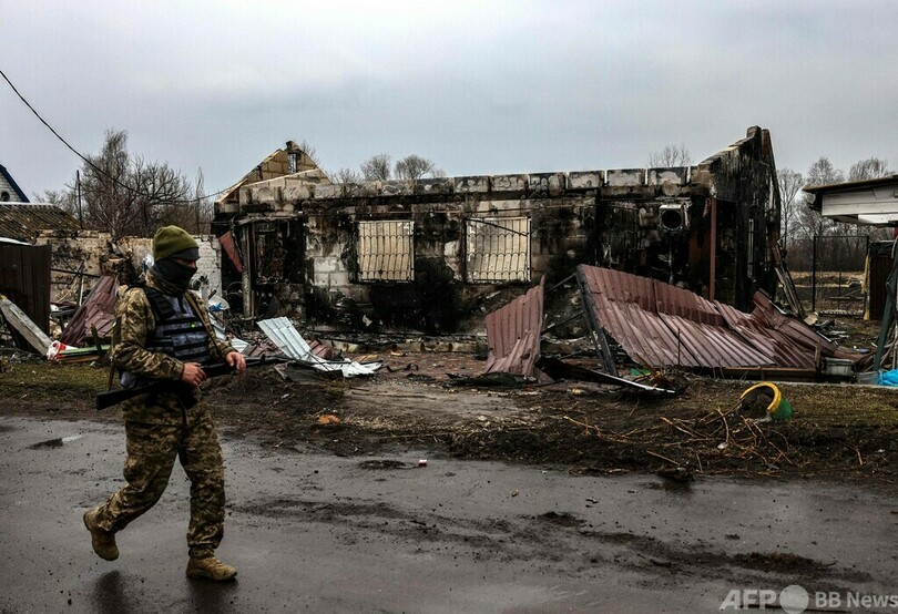 あるウクライナ兵は村の惨状を指して「これが『非軍事化』で『非ナチ化』ってやつだ」と、ロシアのウラジーミル・プーチン(Vladimir Putin)大統領が侵攻を正当化した際の発言を皮肉った。
