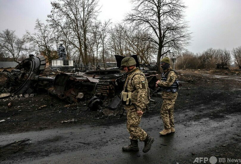 【3月31日 AFP】ウクライナの首都キエフをめぐる戦いは市周辺の村や町が舞台となっている。規模の小さな農村、ルキヤノフカ(Lukianivka)もそのうちの一つで、崩れ落ちた教会のそばには、焼け焦げた戦車と土をかけられたロシア兵の遺体が残されている。