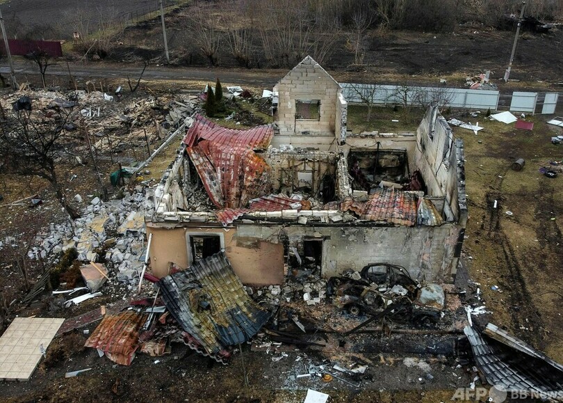 あるウクライナ兵は村の惨状を指して「これが『非軍事化』で『非ナチ化』ってやつだ」と、ロシアのウラジーミル・プーチン(Vladimir Putin)大統領が侵攻を正当化した際の発言を皮肉った。