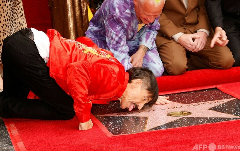 【4月1日 AFP】米ロックバンド、レッド・ホット・チリ・ペッパーズ(Red Hot Chili Peppers)が3月31日、ハリウッドの殿堂入りを果たし、米カリフォルニア州ロサンゼルスにある「ハリウッド・ウォーク・オブ・フェーム(Hollywood Walk of Fame)」の星形プレートを獲得した。(c)AFP