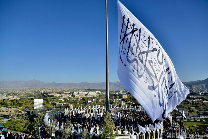 【4月1日 AFP】アフガニスタンのイスラム主義組織タリバン(Taliban)は3月31日、首都カブールを見渡せる丘に横40メートル、縦26メートルのタリバンの旗を掲げた。