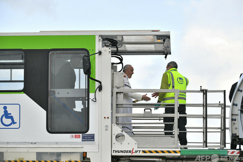 ローマ教皇、リフトで特別機搭乗 タラップ使わず