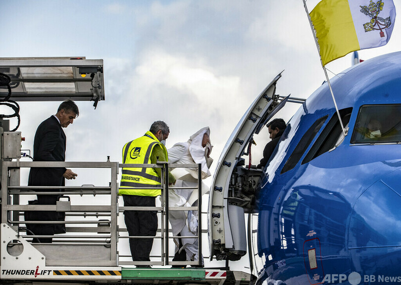 ローマ教皇、リフトで特別機搭乗 タラップ使わず