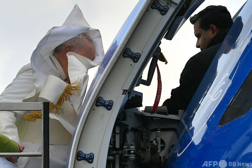 ローマ教皇、リフトで特別機搭乗 タラップ使わず