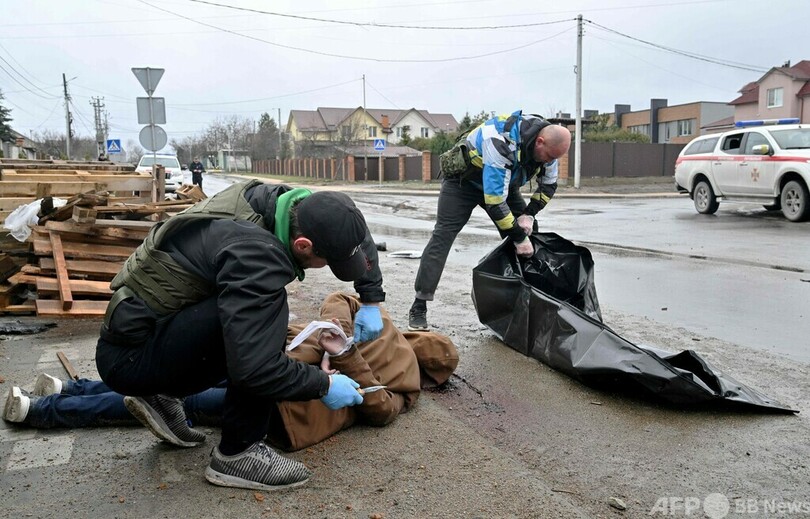 【4月4日 AFP】ウクライナ側がロシア軍から奪還した首都キーウ郊外のブチャ(Bucha)で、民間人とみられる多数の遺体が見つかったのを受け、国際社会からは3日、怒りの声が上がった。欧米諸国はロシアによる戦争犯罪だと非難している。