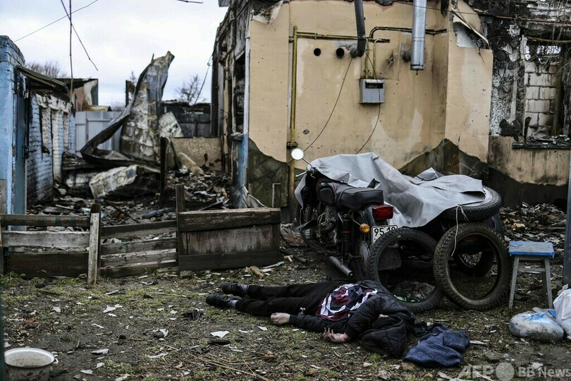 【4月4日 AFP】ロシア軍が撤退したウクライナの首都キーウ郊外ブチャ(Bucha)で3日、犠牲者の追悼が始まった。現実を直視することに耐えられない人も多く、荒廃した街のあちこちに遺体が放置されて、集団埋葬された遺体の身元確認も進んでいない。
