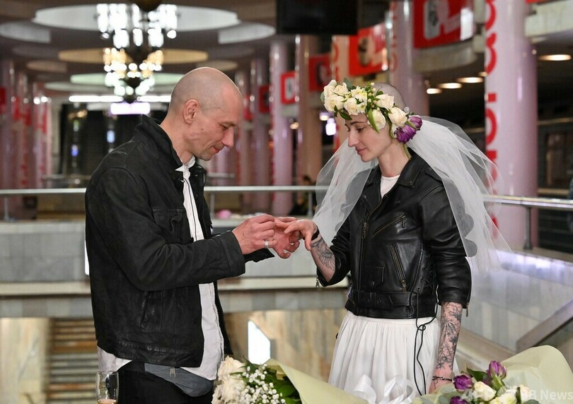 【4月5日 AFP】ウクライナ第2の都市ハルキウ(Kharkiv)中心部のがれきの中で3日、新婚のアントン・ソコロウ(Anton Sokolov)さんとナスチャ・グラチェーワ(Nastya Gracheva)さんが写真撮影に応じた。花嫁のグラチェーワさんは、黒いジャケットの上から羽織ったドレス姿で写真に納まった。