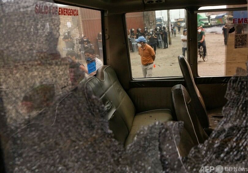 ペルーではここ数日、食料価格に加えて燃料価格も高騰し、高速料金が値上げされたため、全国で抗議デモが行われていた。政府は先週末、燃料高騰の緩和策として、燃料税を撤廃していた。(c)AFP