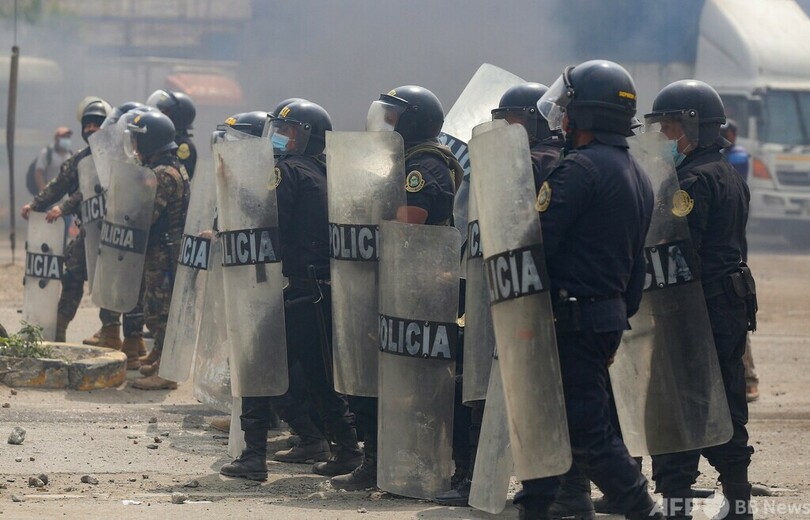 ペルーではここ数日、食料価格に加えて燃料価格も高騰し、高速料金が値上げされたため、全国で抗議デモが行われていた。政府は先週末、燃料高騰の緩和策として、燃料税を撤廃していた。(c)AFP