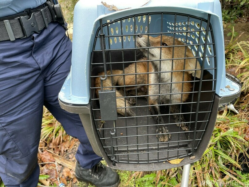 警察はキツネを捕獲して自然に戻すため、直ちに動物管理官を派遣。数時間後、ソーシャルメディアにケージに入ったキツネの写真を投稿し「捕獲完了」とキャプションを添えた。