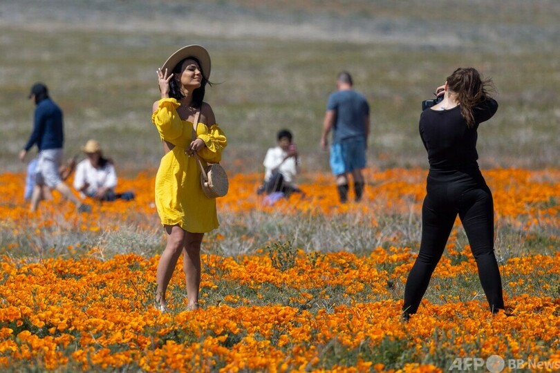 【4月10日 AFP】米カリフォルニア州のアンテロープバレー・カリフォルニアポピー保護区(Antelope Valley California Poppy Reserve)周辺にここ最近の雨によってポピーなどの野生の花が咲き、大勢の人が訪れた。