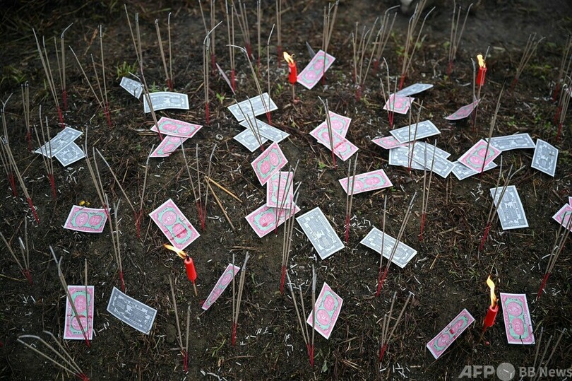 【4月14日 AFP】マレーシア・パハン(Pahang)州カラク(Karak)で、中国の伝統行事「清明節(Qingming Festival)」の前日に、墓地で先祖のためにお金に見立てた紙を燃やす中国系マレーシア人の男性。清明節は「墓掃除の日(Tomb Sweeping Day)」としても知られている。(c)AFP