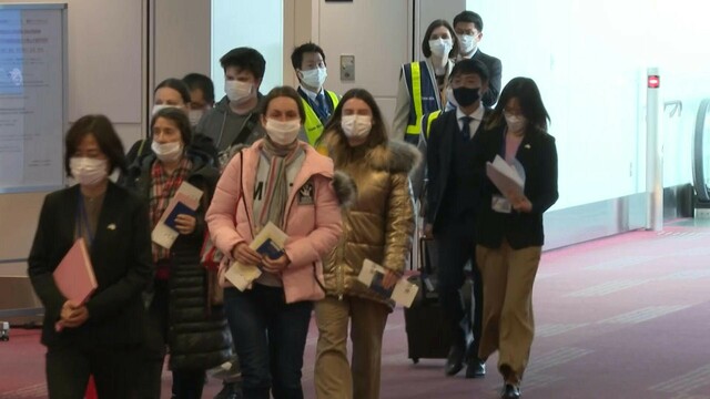 ロシアによる軍事侵攻を受けてウクライナを逃れた20人が5日、ポーランド訪問を終えた林芳正(Yoshimasa Hayashi)外相の帰国に合わせ、政府専用機の予備機で羽田空港に到着した。