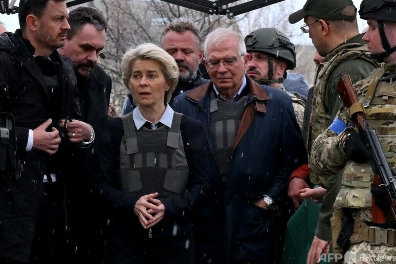 フォンデアライエン氏は、ウクライナのウォロディミル・ゼレンスキー(Volodymyr Zelensky)大統領との共同会見で、「ロシアが経済と財政、技術面で衰退していく一方、ウクライナは欧州の未来に向け前進している」と言明。「あなた方の戦いは、われわれの戦いだ。私はきょう、EUがあなた方の味方であるという強いメッセージを送るために、一緒にキーウにいる。われわれはあなた方と共にいる」と表明した。