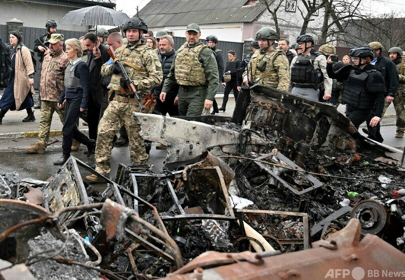 【4月9日 AFP】欧州連合(EU)のウルズラ・フォンデアライエン(Ursula von der Leyen)欧州委員長は8日、ウクライナの首都キーウを訪問し、西側諸国の厳しい制裁によりロシアが今後「衰退」する一方で、ウクライナには「欧州の未来」があると指摘した。