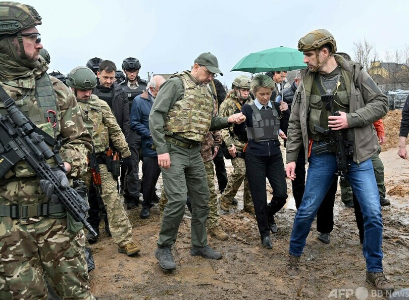 フォンデアライエン氏は、ウクライナのウォロディミル・ゼレンスキー(Volodymyr Zelensky)大統領との共同会見で、「ロシアが経済と財政、技術面で衰退していく一方、ウクライナは欧州の未来に向け前進している」と言明。「あなた方の戦いは、われわれの戦いだ。私はきょう、EUがあなた方の味方であるという強いメッセージを送るために、一緒にキーウにいる。われわれはあなた方と共にいる」と表明した。