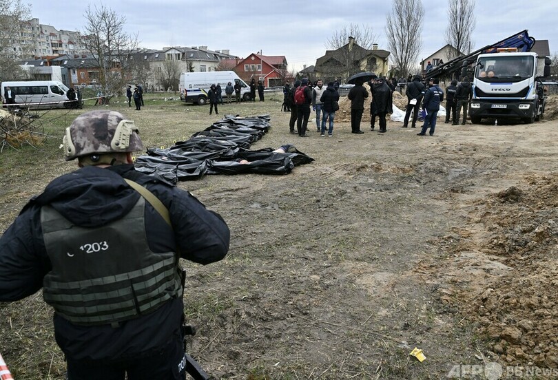【4月9日 AFP】ウクライナ当局は8日、首都キーウ近郊ブチャ(Bucha)で集団埋葬されていた遺体を掘り返す作業を開始した。警察は、ロシア軍の戦争犯罪を立証する第一歩としている。