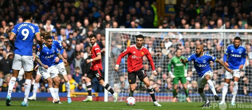 残留争いをするエバートンを相手に精彩を欠いたユナイテッドは、来季の欧州チャンピオンズリーグ(UEFA Champions League 2022-23)出場となる4位と6ポイント差の7位にとどまった。(c)AFP