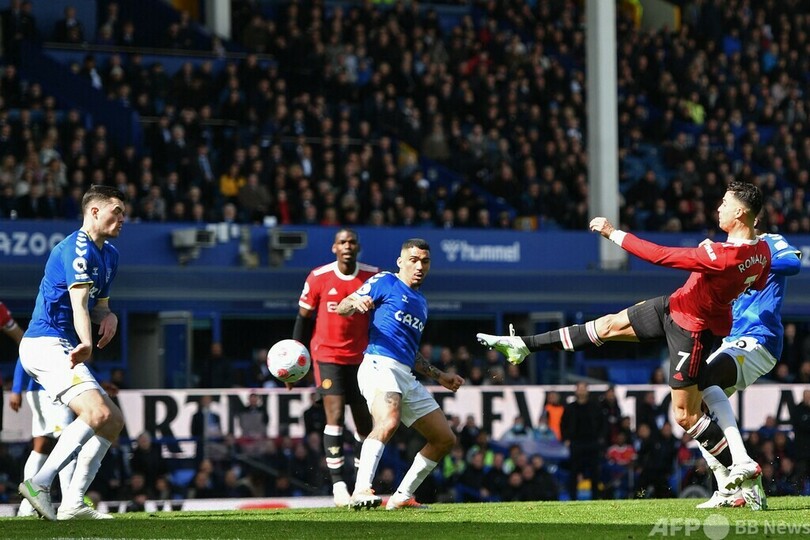 残留争いをするエバートンを相手に精彩を欠いたユナイテッドは、来季の欧州チャンピオンズリーグ(UEFA Champions League 2022-23)出場となる4位と6ポイント差の7位にとどまった。(c)AFP