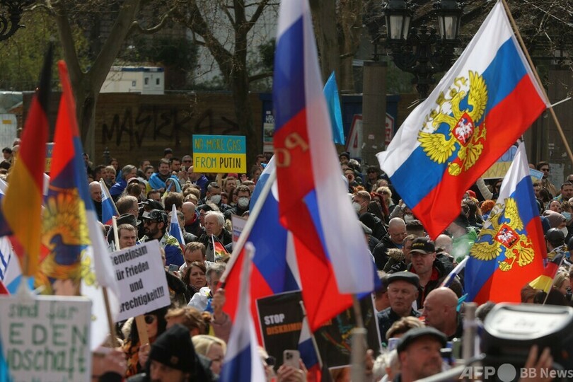 【4月11日 AFP】ドイツ各地で先週末にかけ、親ロシア派によるデモが行われた。ドイツ国内のロシア語話者は、同国によるウクライナ侵攻以来、差別に直面していると訴えている。