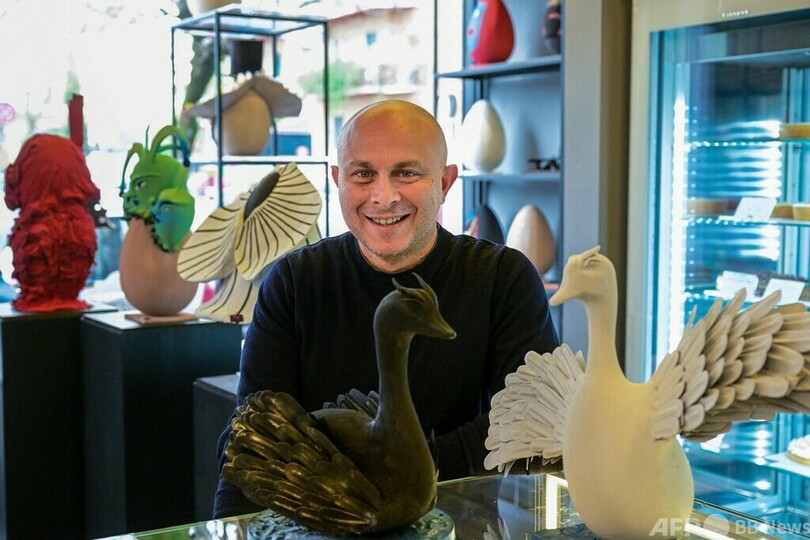 【4月17日 AFP】イタリア・ローマの菓子店「パスティッチェリア・ボンピアーニ(Pasticceria Bompiani)」に、芸術作品から着想を得たイースター(復活祭)向けのチョコレートが並んだ。