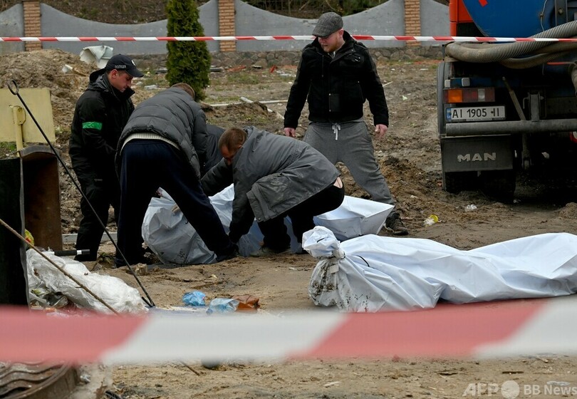 【4月11日 AFP】ウクライナの首都キーウ近郊にある破壊されたガソリンスタンドの裏で、女性が泣き崩れた。のぞき込んだマンホールの中に、23歳の息子ともう一人別の男性の遺体があるのを目にした直後のことだった。「私の坊や」と、女性の悲痛な声が響いた。